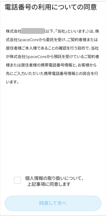 「ホームシェアリングメンバー 」として登録いただいた電話番号を入力します。