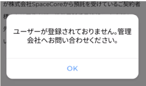パターン3:「ユーザーが登録されておりません。管理会社へお問い合わせください」