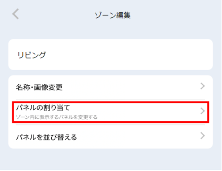 各デバイスの操作パネルの右上に表示されている歯車マークから、ゾーンの割り当て・変更を行うことができます。