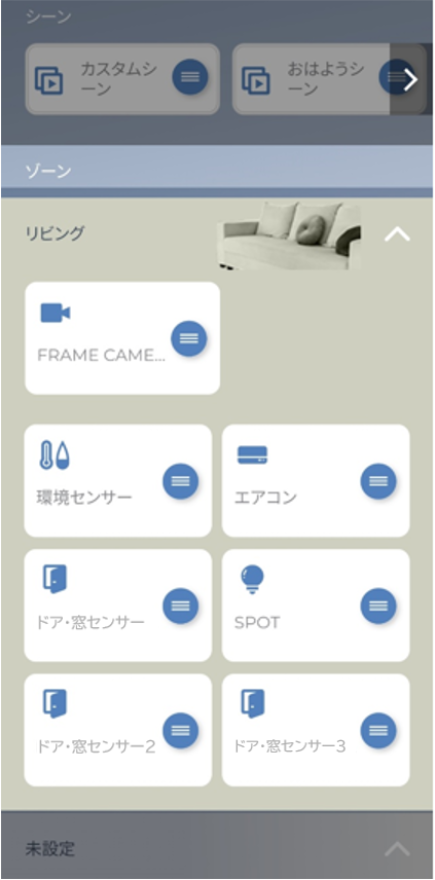 ※ゾーンを割り当てていないデバイス・リモコンは、ゾーン最下部の「未設定」に表示されます。
