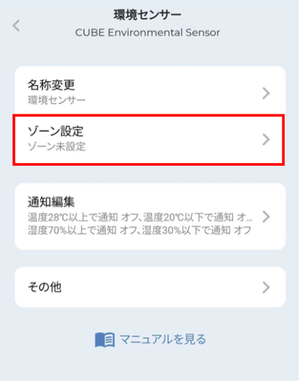 1. 設定を変更したいゾーンのゾーン名をタップします。