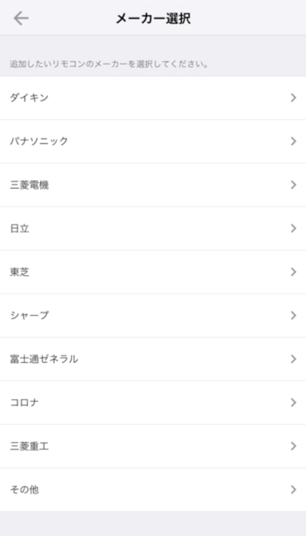 2.メーカー選択画面からお使いの機器のメーカーをタップしてください。