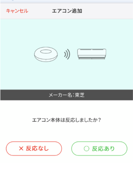 4. エアコン本体の電源が反応したら反応ありをタップしてください*。