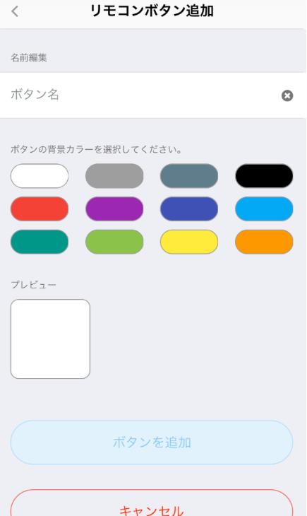 7. 学習したリモコンボタンのボタン名、ボタンの色を編集する画面に遷移しますので、お好みの内容に設定し、[ボタンを追加]をタップします。