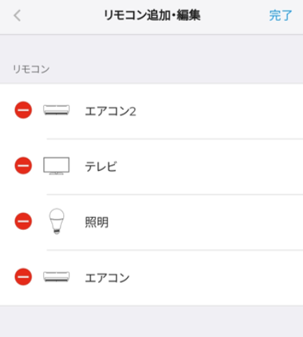 作成したリモコンを削除したい場合、以下の手順で削除をすることができます。