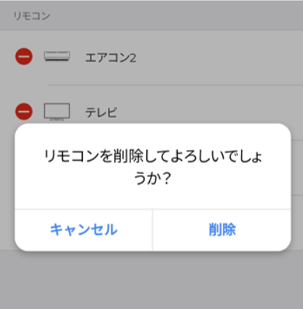⑤リモコンを削除してよろしいでしょうか?というポップアップが表示されますので、「削除」を選択します。