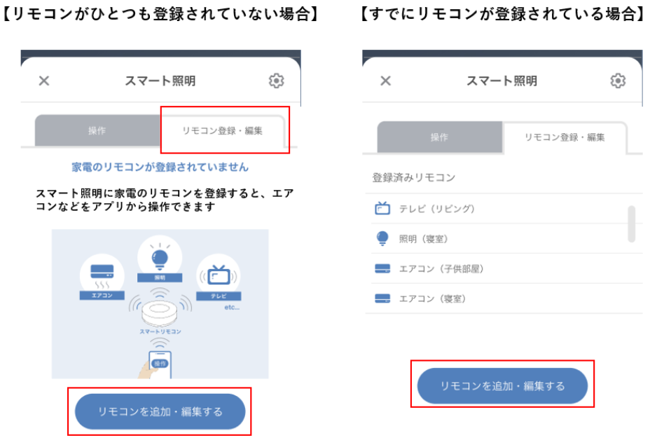 2. 「リモコン追加・編集」画面にて[+]をタップします。