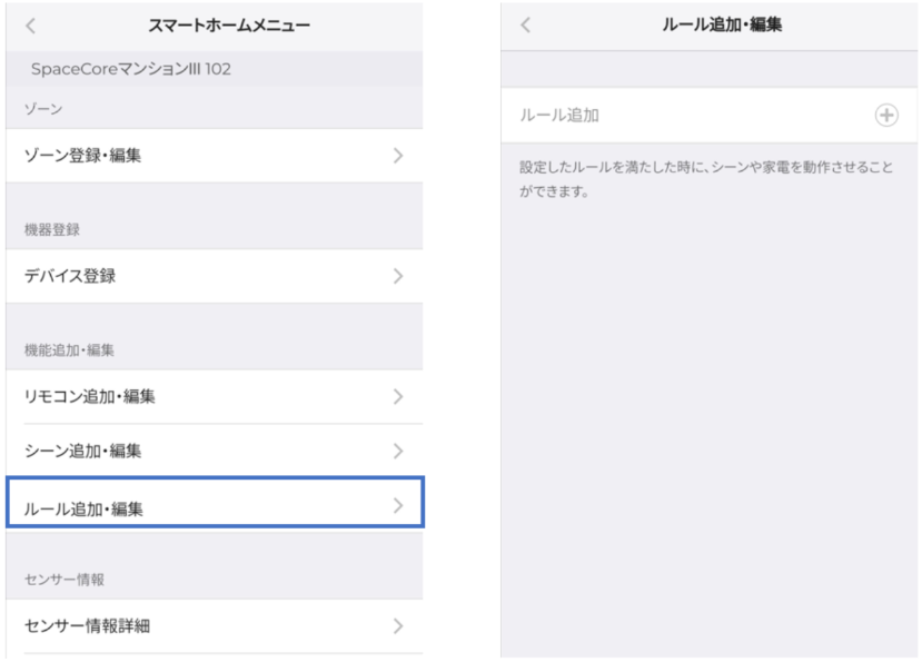 また、歯車マークをタップすることでルールの編集を行うことができます。シーンを実行する