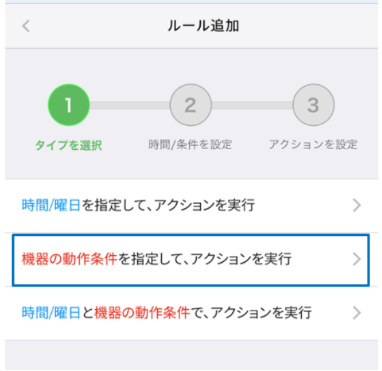 3. [機器の動作条件を指定して、アクションを実行]をタップします。