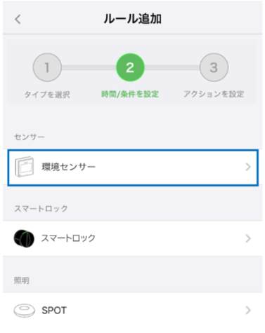 - 部屋が暗かったら → 条件を指定(環境センサーの明るさ指定)