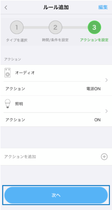 5. アクションの追加が終わったら、[次へ]ボタンをタップします。