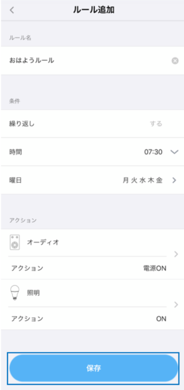 7. 設定した内容を確認し、[保存]ボタンをタップすると、ルールが保存されます。