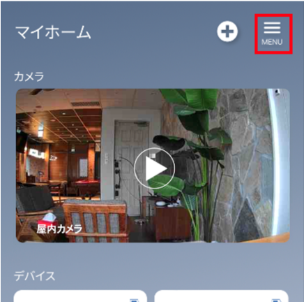 1. スマートホーム画面トップ右上に表示されている、「≡MENU」をタップします。