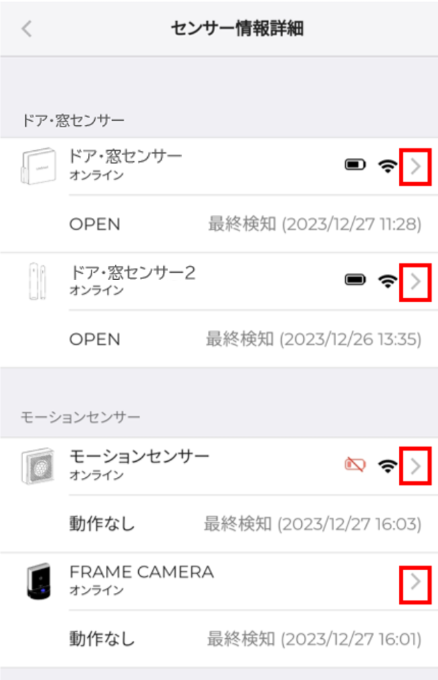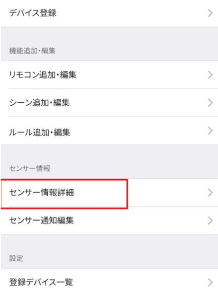 3. 閲覧したいセンサー項目の右端「>」マークをタップします。