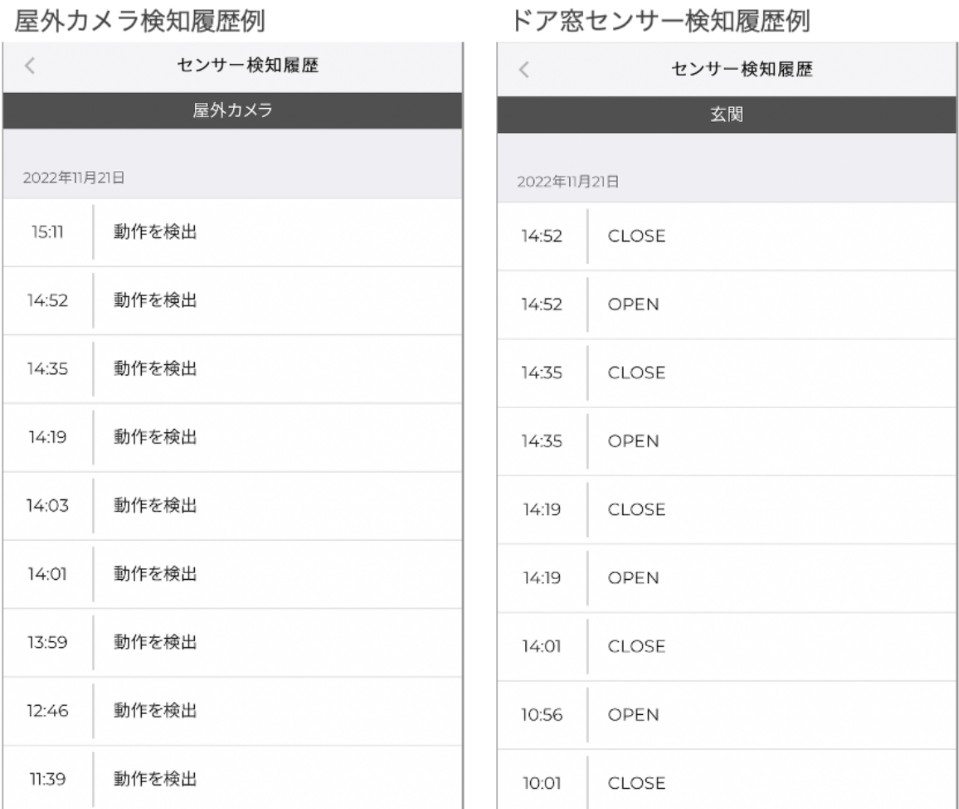 - Outdoor Camera(屋外カメラ):動作を検出した日時を確認できます。