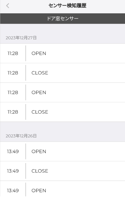 - CUBE Door/Window Sensor:OPEN/CLOSEを検出した日時を確認できます。