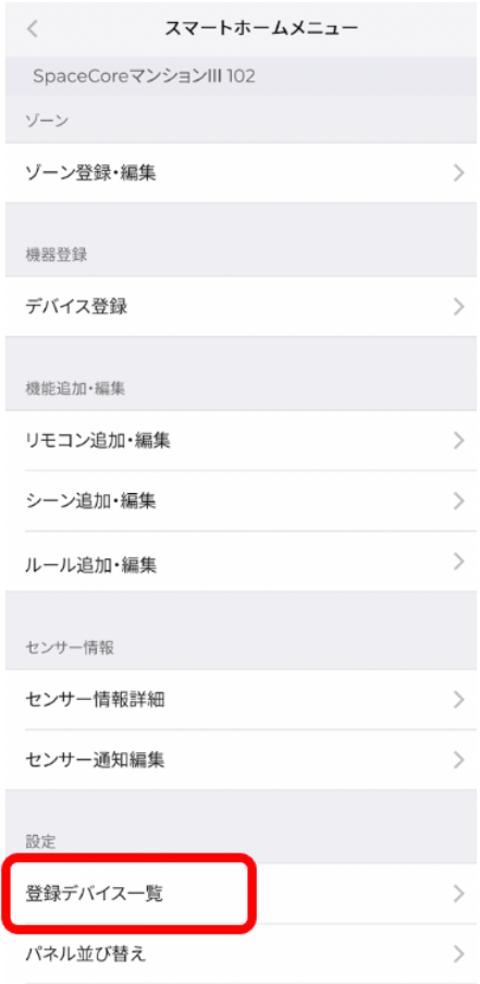 2.「登録デバイス一覧」をタップします。