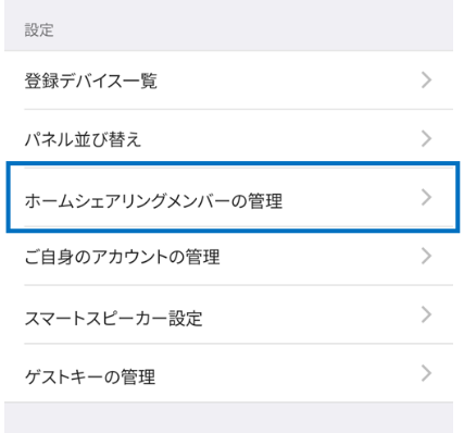 スマートホームユーザー様のご家族にも、スマートホームのリモコン機能をご利用いただけるよう設定することができます。ただし、ホームシェアリングメンバーとして登録したユーザーの場合、操作いただける機能は限られております。ご利用いただける機能については、こちらをご覧ください。