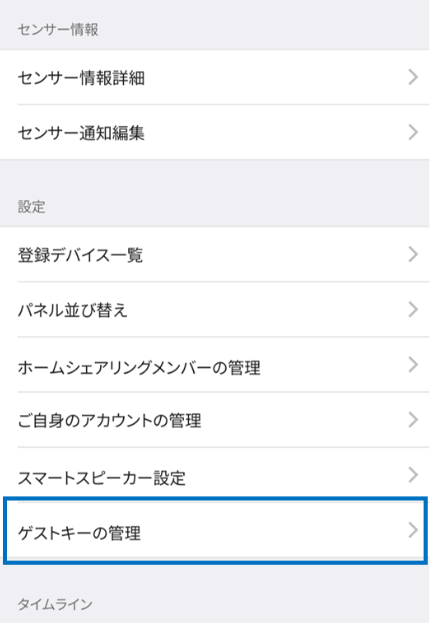 2. スマートホームのメニューから、「ゲストキーの発行」をタップします。