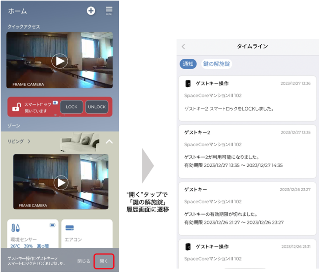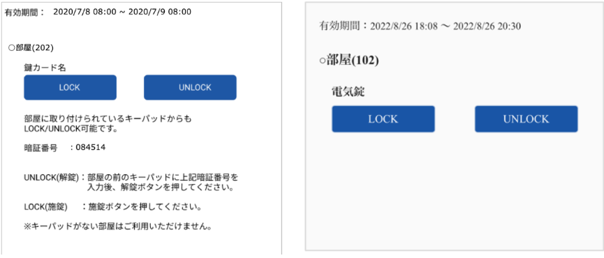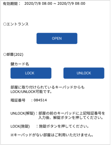 ※物件によっては、ゲストキーによるエントランスの解錠操作に対応していない場合がございます。その場合は、部屋の「LOCK」「UNLOCK」ボタンのみ表示されます。