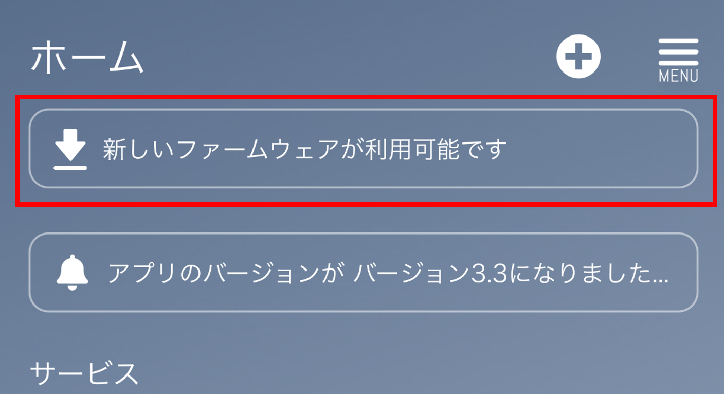 1.スマートホームトップ画面上部の「新しいファームウェアが利用可能です」をタップします。