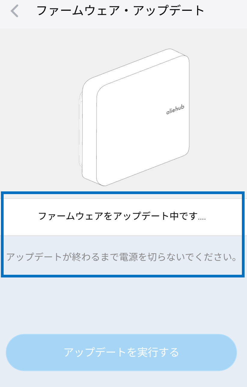 6.「アップデートを実行する」ボタンをタップしたら、以下の表示に切り替わりますので、しばらくそのままお待ちください(1~2分程度)。