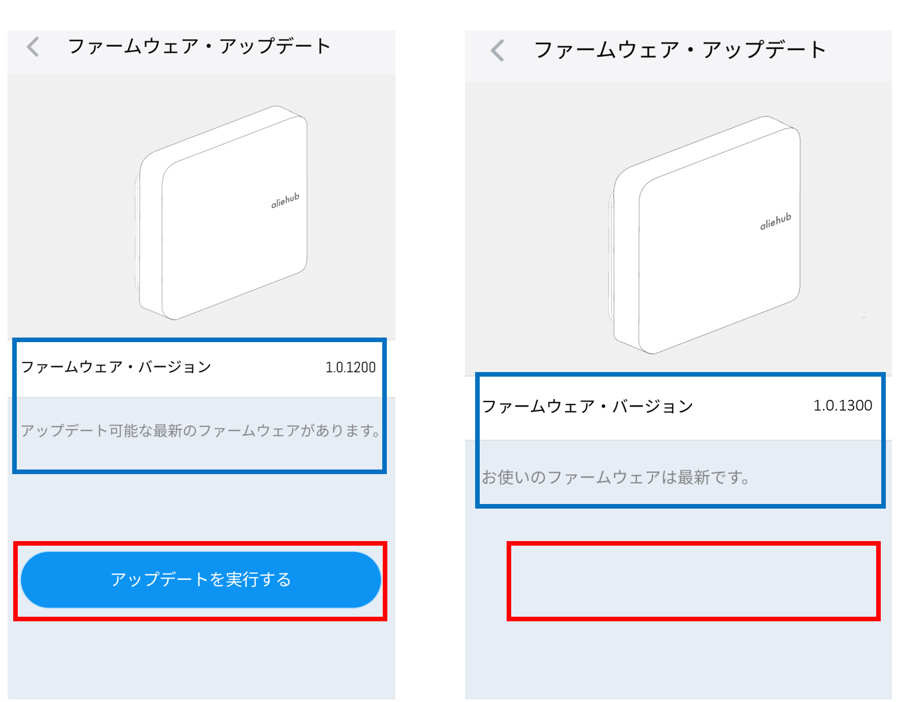 ファームウェアの更新は、以下の2通りから実施可能です。aliehubを例に、ファームウェアアップデートの手順について、説明します。