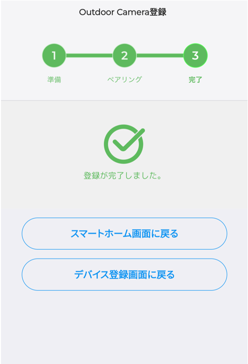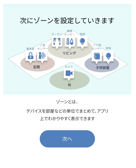 <ゾーン未作成の場合>10. デバイス登録完了画面が表示されます。操作方法は、アプリでの操作マニュアル をご覧ください。