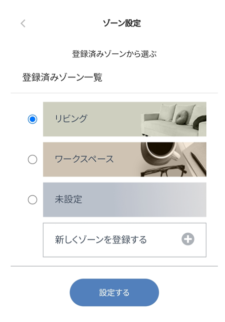 ※ゾーンを設定しておらず、このままゾーンを選択しない場合は ゾーン設定しない をタップしてください。