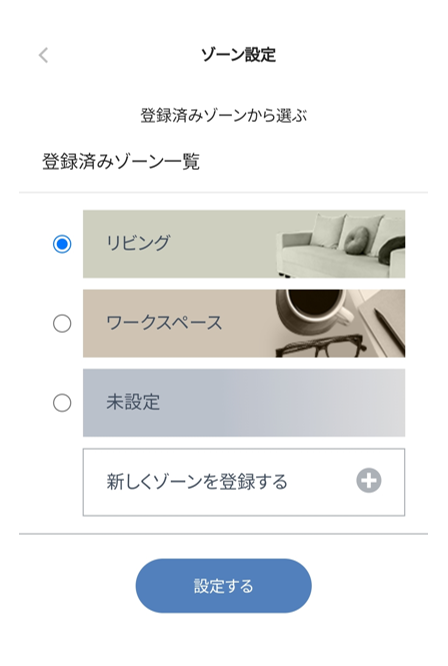 ※ゾーンを設定しておらず、このままゾーンを選択しない場合は ゾーン設定しない をタップしてください。