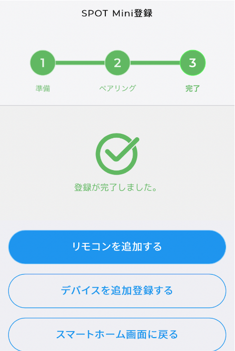 8.以上でSPOT Miniの登録完了です。※ご注意事項