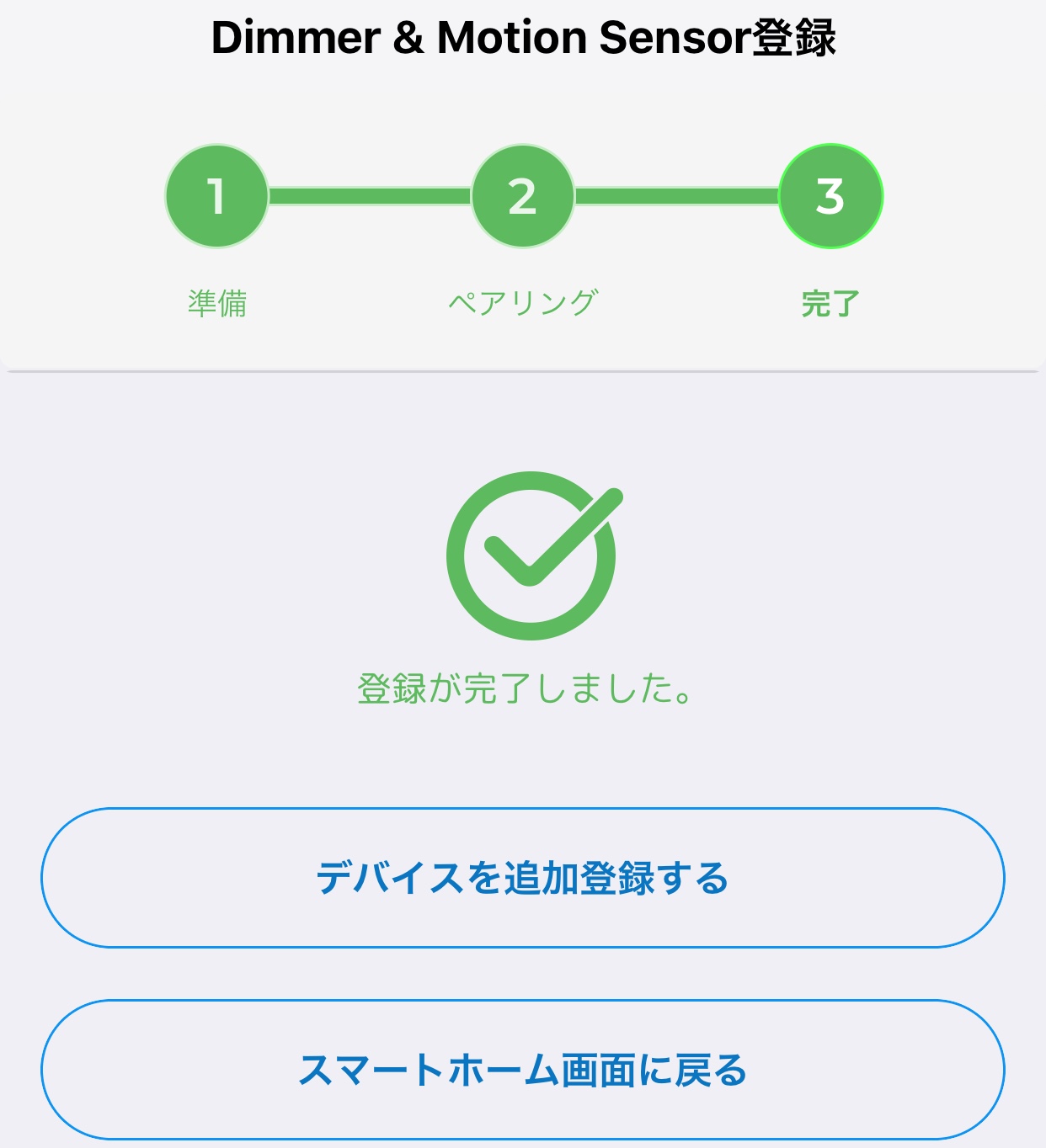 8. 通信が完了したらDimmer & Motion Sensorのペアリングが完了です。