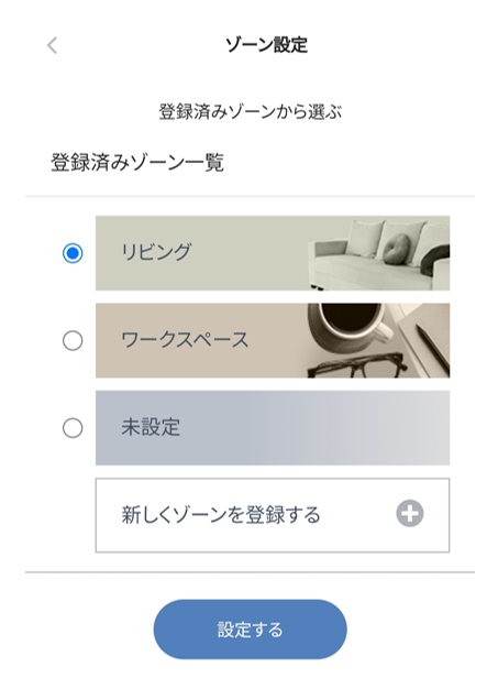 ※ゾーンを設定しておらず、このままゾーンを選択しない場合は ゾーン設定しない をタップしてください。