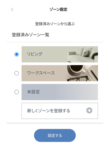 ※ゾーンを設定しておらず、このままゾーンを選択しない場合は ゾーン設定しない をタップしてください。