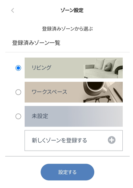 ※ゾーンを設定しておらず、このままゾーンを選択しない場合は ゾーン設定しない をタップしてください。