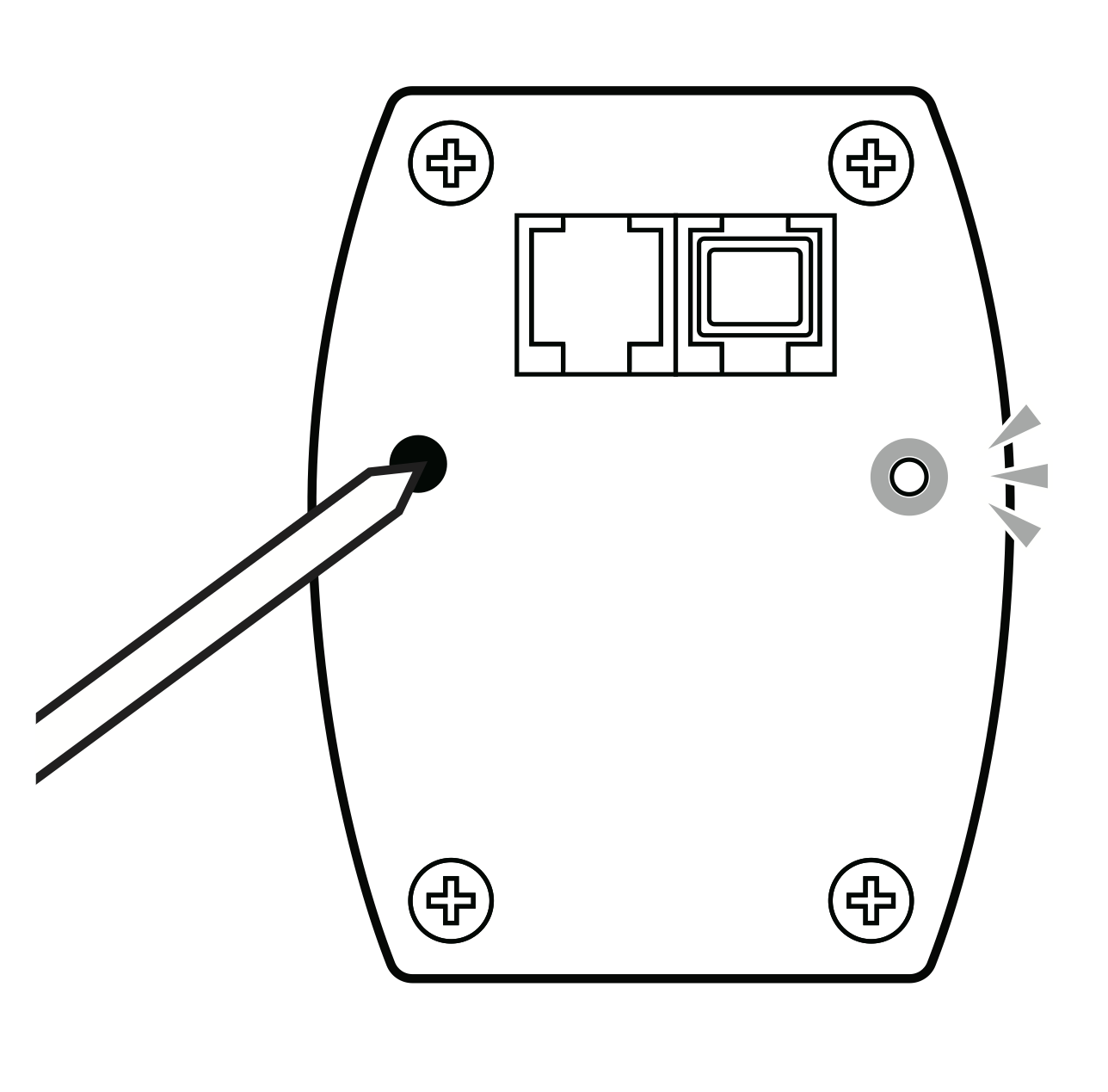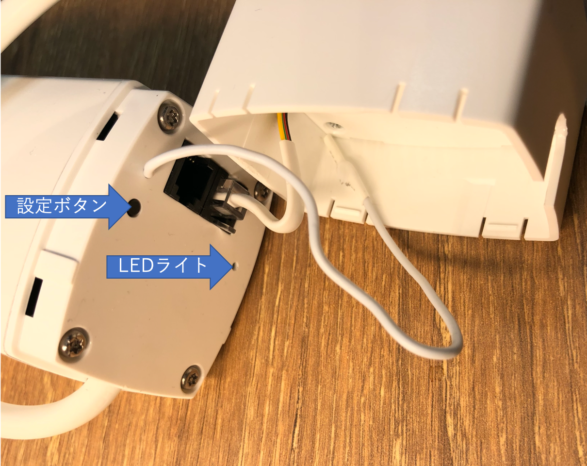 - デバイス本体のカバーを外して、黒い設定ボタンを長押しし、LEDが1回点滅したら、設定ボタンから手を離します。