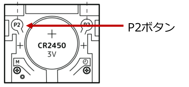 P2ボタン(リモコン電池カバー開けた裏面図)