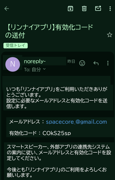 ③登録が行われると、手順②で登録したメールアドレス宛に有効化コードが送付されます。