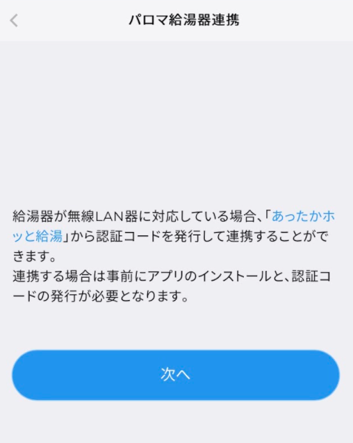 ご利用対象となる給湯器が、「あったかホッと給湯」アプリにて、給湯器リモコンが登録済であることが前提となります。「あったかホッと給湯」での給湯器連携方法については、パロマのHPをご確認ください。
