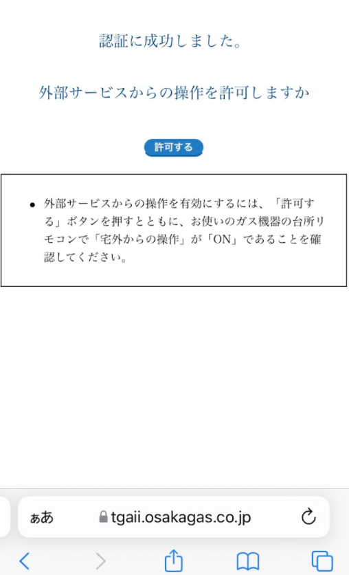 ⑤「認証に成功しました」と表示されたら「許可する」をタップします。