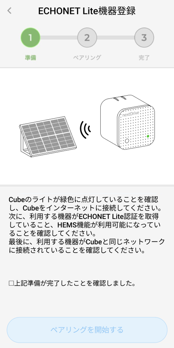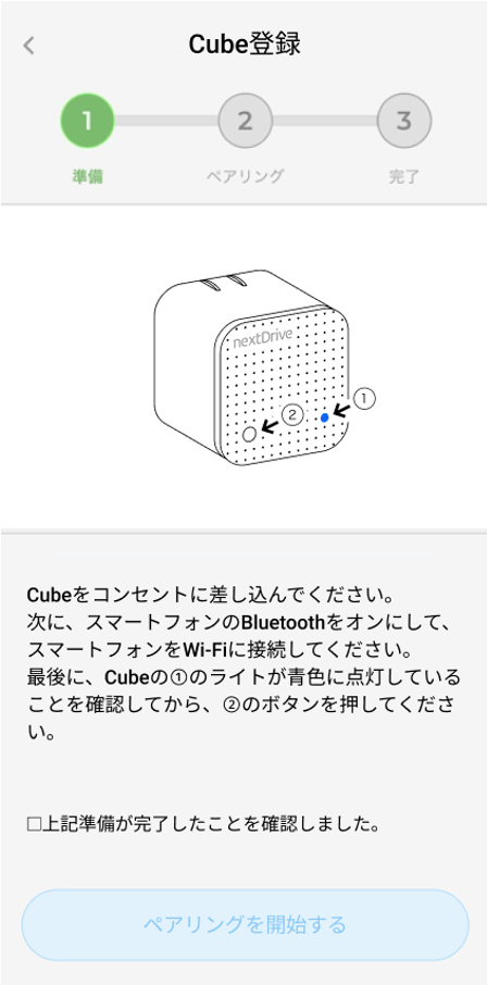 準備が完了したら、チェックボックスにチェックをつけ、「ペアリングを開始する」をタップしてください。