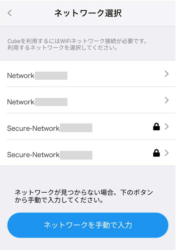 ※ネットワークが見つからない場合は、「ネットワークを手動で入力する」をタップしてください。