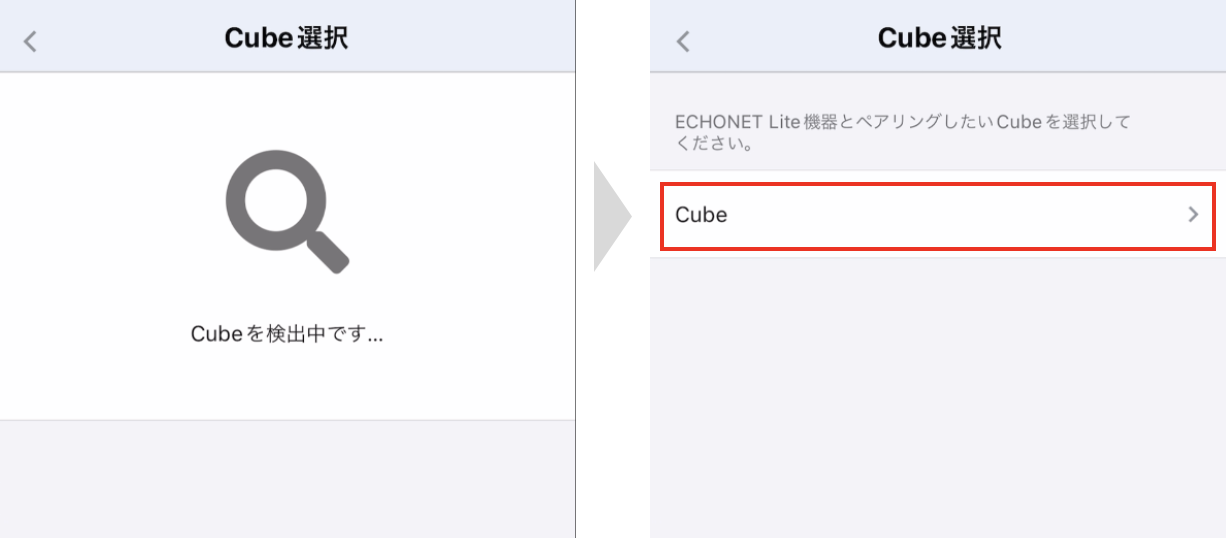 Cube Jが表示されたら、ECHONET LiteとペアリングしたいCube Jをタップしてください。