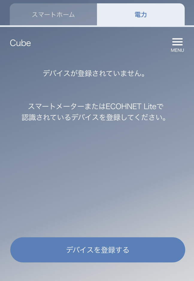1. スマートホームタブを開き、右上のアイコン「MENU」をタップしてください。
