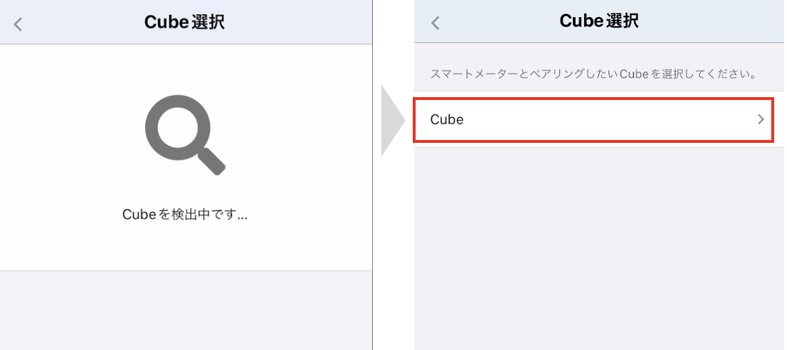 Cube Jが表示されたら、スマートメーターとペアリングしたいCube Jをタップしてください。