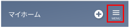 ①SpaceCoreアプリを開き、「スマートホーム」タブ 右上の「≡MENU」マークをタップしてください。