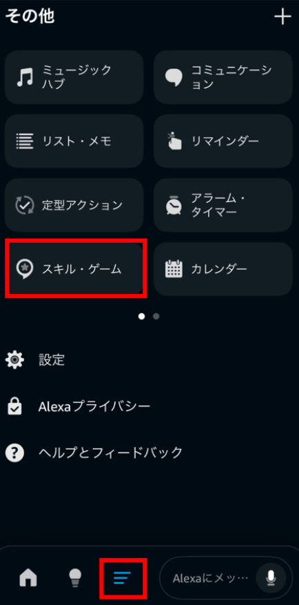 ②Alexaアプリを起動し、その他 > スキル・ゲーム をタップし、「Alexaスキルを検索」と表記された検索窓から「SmartHome Vox」を検索します。