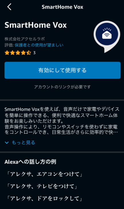 ↓③「SmartHome Vox」を選択し、「有効にして使用する」をタップします。