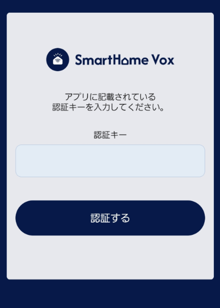 ④認証キー入力項目に、SpaceCoreアプリでコピーした認証キー情報をペーストし、認証するをタップします。