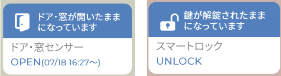ドア・窓や鍵が開いている状態が1時間以上継続すると、お知らせします。